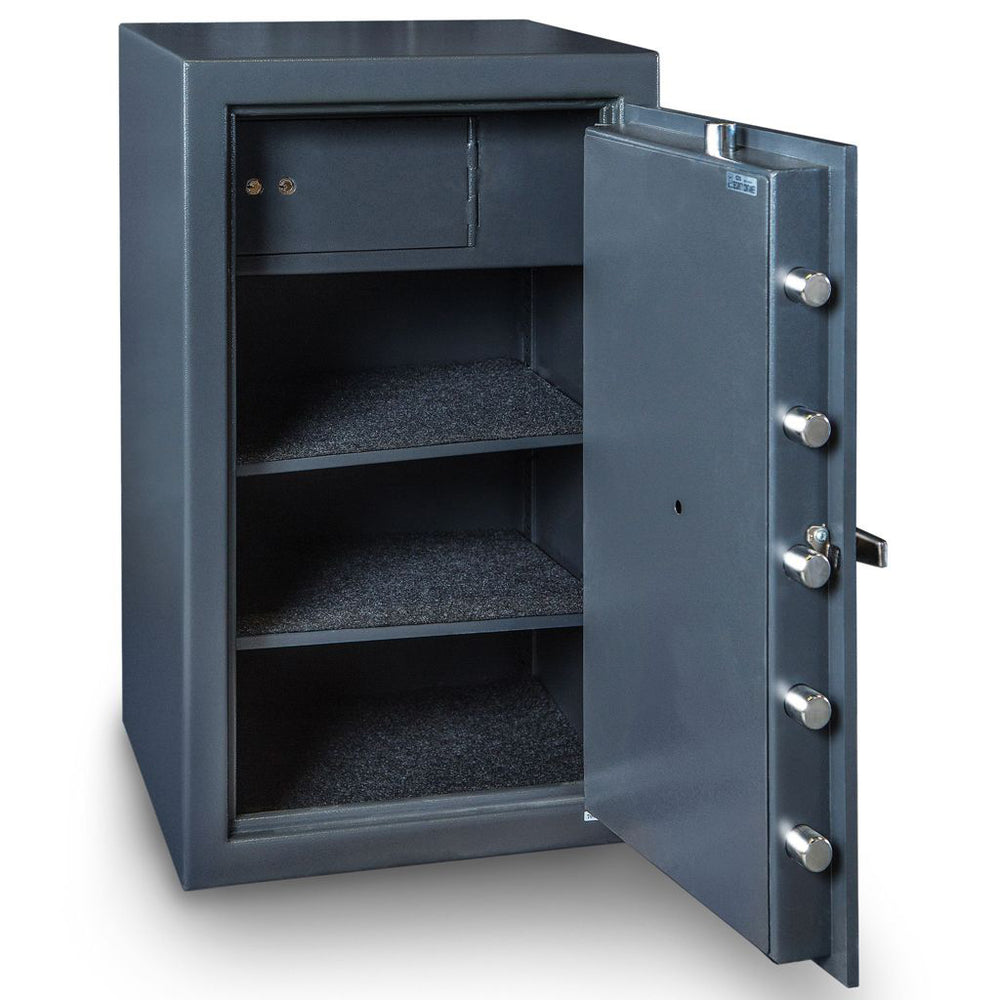 Large b-rated cash safe design for heavy usage in a retail environment. UL group II combination lock gives great reliability.